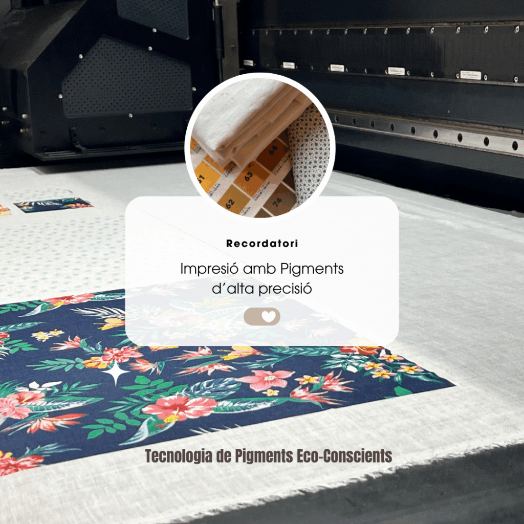 La impressió amb pigments digitals representa una revolució en el món tèxtil: una tècnica neta, eficient i respectuosa amb el medi ambient. La nostra solució permet imprimir directament sobre teixits naturals i sintètics sense necessitat de processos humits agressius ni fixacions químiques contaminants.